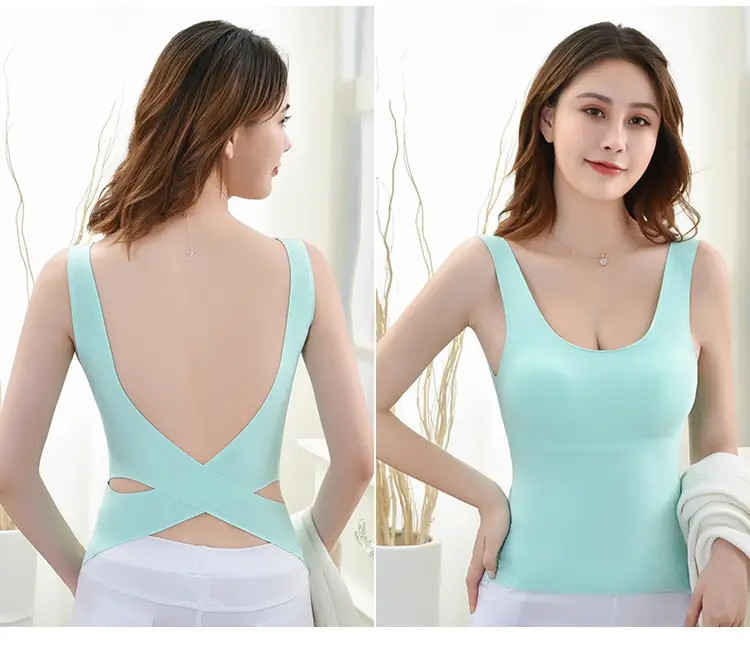 ไขว้หลัง เพื่อเผยให้เห็นแผ่นหลังสุดเซ็กซี่ มีความยืดหยุ่นสูง ใส่สบายไม่อึดอัด แฟชั่นเซ็กซี่พอดีตัว กระชับมีเสน่ห์เซ็กซี่ เหมาะสำหรับเล่นโยคะ / กีฬา / พักผ่อน / วันหยุด / ใส่ทับใน